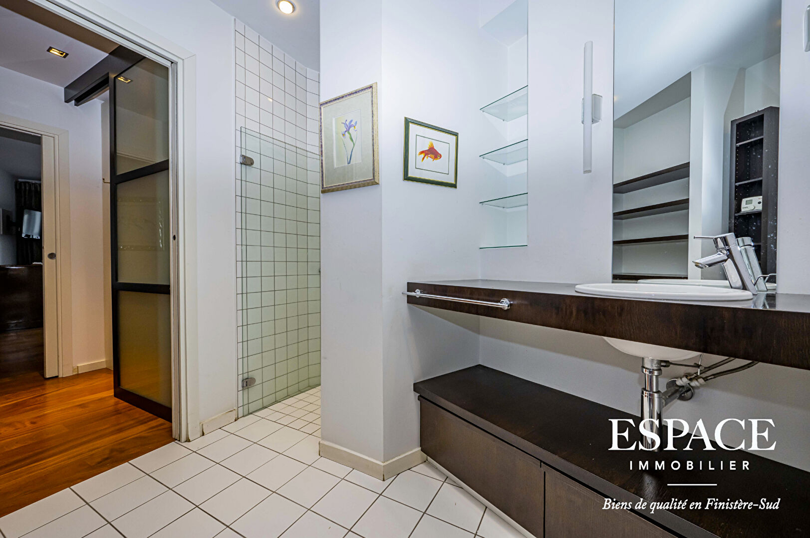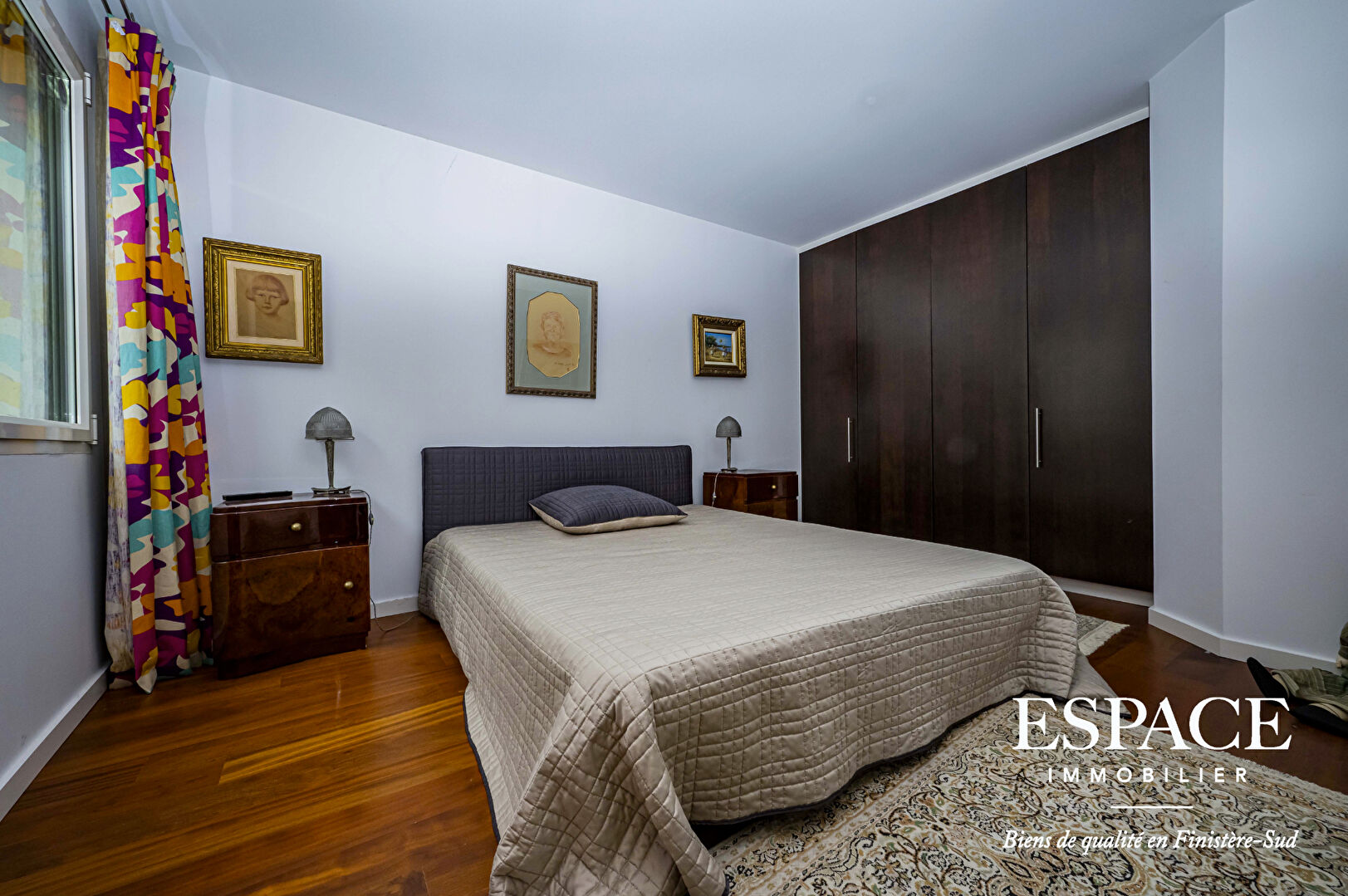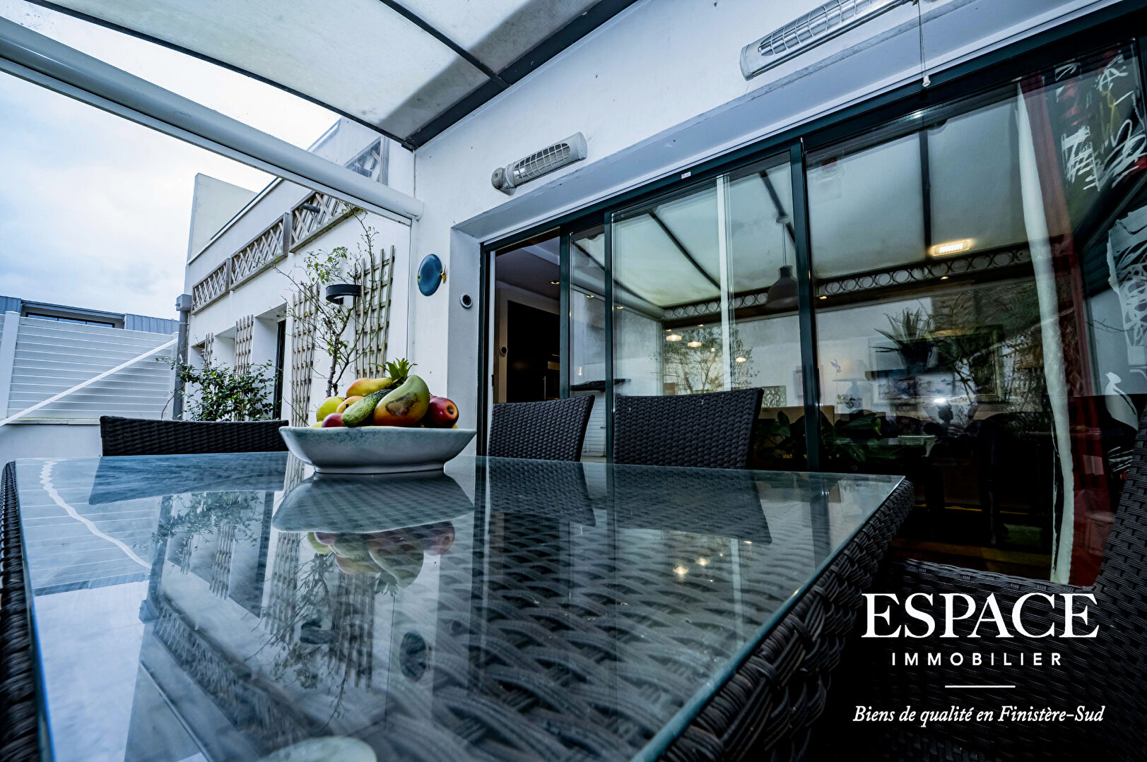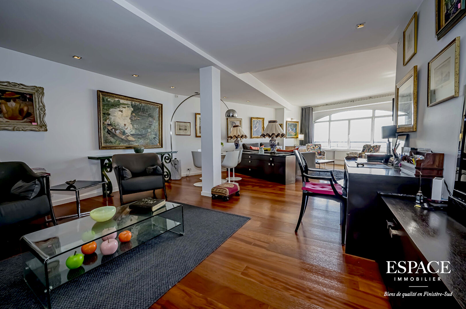 VENDU PAR L'AGENCE - En 1ère ligne devant la mer au sein d'une résidence de qualité composée de seulement quelques appartements et offrant une belle proximité avec la Corniche, le port de plaisance et les rues commerçantes du centre-ville, nous vous proposons cet appartement contemporain d'une surface rare de 154 m² répartie sur un seul niveau. Vous apprécierez particulièrement sa spacieuse terrasse de 85.00 m² au calme. Cet appartement exceptionnel procure volumes et confort avec une entrée, un double séjour, une cuisine équipée ouverte sur une salle à manger. Côté nuit, deux suites comprennent chacune un dressing, une salle de douche et un WC. Il est également très fonctionnel avec de nombreux rangements et une lingerie. En annexe, un garage double dans l'immeuble et une grande cave complètent ce bien rare sur le marché à découvrir avec l'agence ESPACE IMMOBILIER - biens de qualité en Finistère Sud.