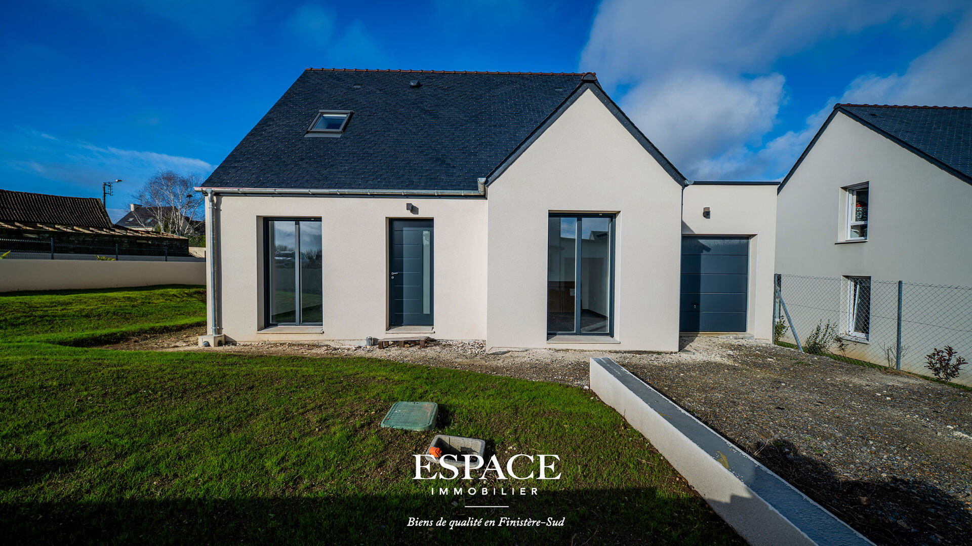 Située à seulement 5 à 10 minutes du centre-ville, cette maison neuve de 97 m², édifiée sur un terrain de 350 m², vous offre le confort et les avantages d'un bien déjà construit, sans attendre la fin du chantier. Au rez de chaussée, vous découvrirez un lumineux salon-séjour ouvrant sur la terrasse, une belle cuisine équipée, une chambre et une salle de douche avec WC, idéales pour vivre de plain-pied, un cellier pratique, un garage attenant. A l'étage le palier dessert deux chambres, une salle de bains, un WC. Cette maison bénéficie de bonnes prestations et d'une conception pensée pour le confort au quotidien. Cette maison est à découvrir avec l'agence ESPACE IMMOBILIER, biens de qualité en Finistère Sud. Contactez-nous dès aujourd'hui pour programmer une visite. Les informations sur les risques auxquels ce bien est exposé sont disponibles sur le site Géorisques : [www.georisques.gouv.fr](http://www.georisques.gouv.fr). (4.34 % honoraires TTC à la charge de l'acquéreur.)
