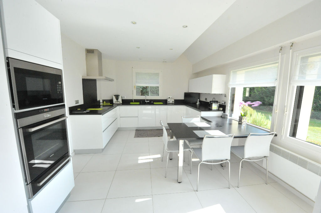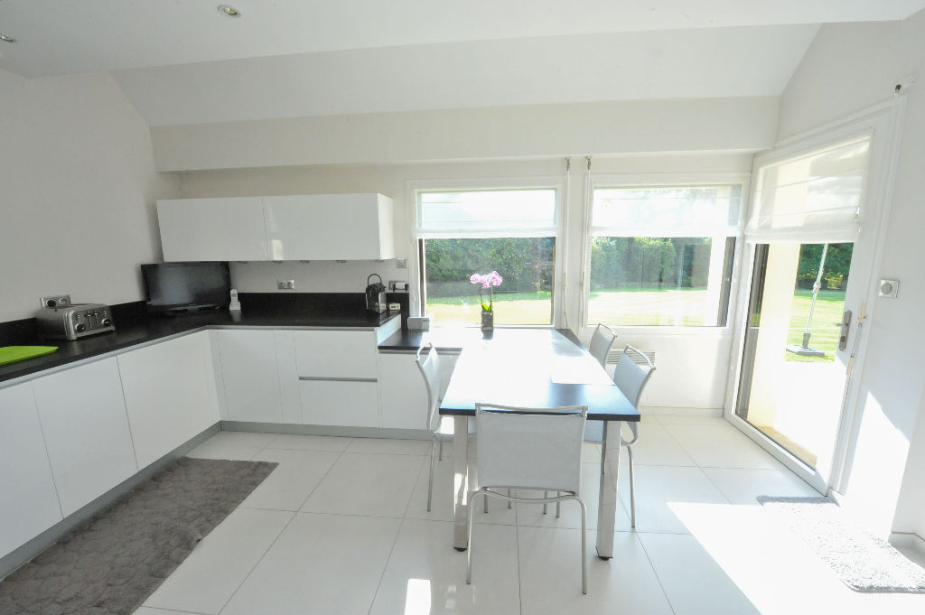 Le Cabellou, à proximité immédiate du bord de mer et des plages, cette maison d'architecte développe environ 169 m² habitables,…