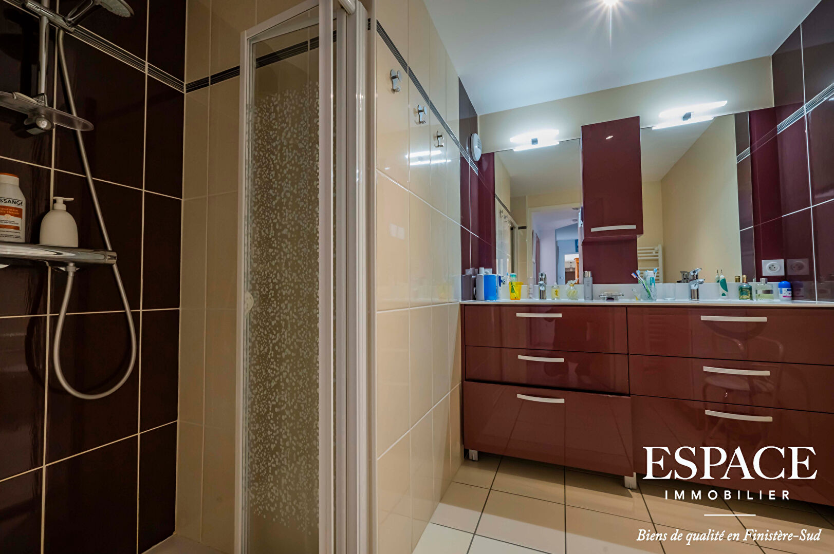 VENDU PAR L'AGENCE. Extrêmement rare à vente, à 100 m de la mer en plein coeur du quartier prisé de la Corniche à proximité des plages et du centre-ville, ce très bel appartement de 116 m² prolongé d'un balcon de 14.82 m² est situé dans l'une des résidences contemporaines les plus recherchées de Concarneau. Sécurité, top emplacement, étage élevé, beaux volumes, luminosité, qualité des prestations et calme sont autant d'atouts exclusifs qu'offre cet appartement en parfait état. Il dispose d'une entrée, un spacieux séjour de 46 m² largement ouvert sur un balcon orienté au Sud, une cuisine indépendante équipée, trois chambres, deux salles de douche, deux WC et de nombreux rangements. Autres atouts indéniables, deux garages et une cave au sous-sol viennent compléter les prestations haut de gamme de cet appartement à découvrir en exclusivité avec l'agence ESPACE IMMOBILIER - Biens de qualité en Finistère-Sud. D.P.E en cours de réalisation. Les informations sur les risques auxquels ce bien est exposé sont disponibles sur le site Géorisques : www.georisques.gouv.frs