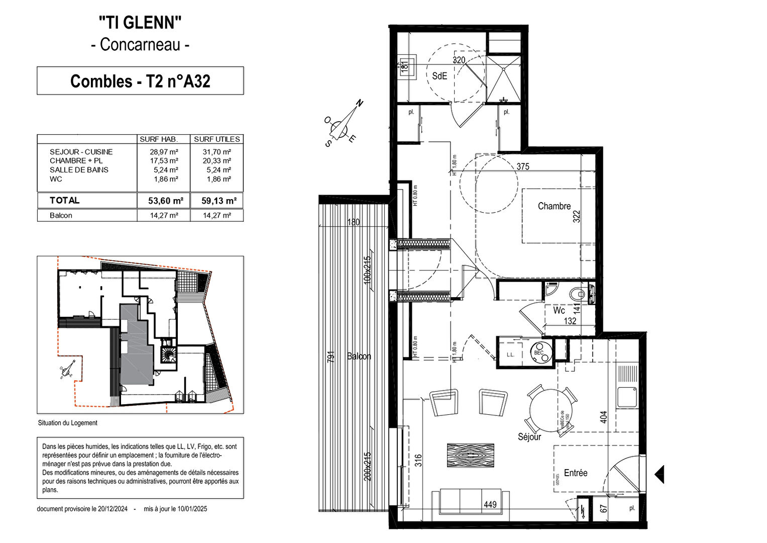 | 3 | Chambre | 17.53 | 20.33 m² utiles |