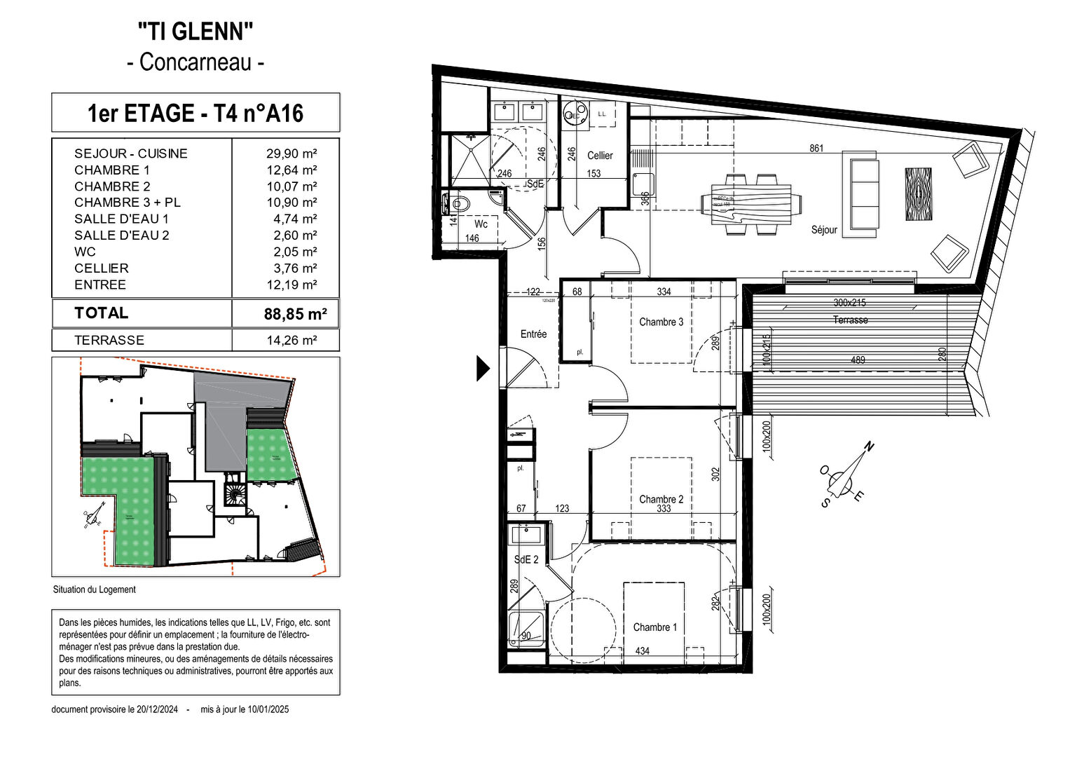 L'agence ESPACE IMMOBILIER a le plaisir de vous proposer à la vente cet appartement de type 4 de 88,85 m² situé au sein de la résidence « TI-GLENN ». Cette nouvelle résidence à l'architecture contemporaine et aux prestations de qualité est composée de seulement 16 appartements et se trouve au coeur de CONCARNEAU, dans le FINISTÈRE.